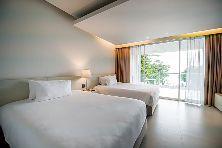 Each Superior Ocean Facing room has a combined indoor and outdoor space of 34 square metres, laid out in a contemporary style combining sharp lines, light wood accents and a cooling white and grey décor. The Gulf of Thailand forms an alluring visual backdrop for each furnished balcony, and each room offers you the choice of either a king-sized bed for 2 adults and1 child; or two double beds, ideal for families of 2 adults and 2 children. Every Superior Ocean Facing room has a bathroom with a spacious shower. In-room amenities and services include free Wi-Fi, individually-controlled air-conditioning, a flat-screen TV with international channels and DVD player, a minibar, tea and coffee-making facilities, an in-room safe and a hairdryer. Interconnecting rooms are available upon request.